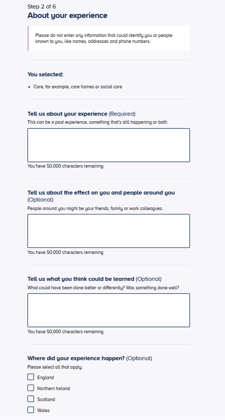 Members of the public were invited to complete an online form via the Inquiry’s website (paper forms were also offered to contributors and added via the online form for analysis). This asked them to answer three broad, open-ended questions about their pandemic experience as set out in Figure 1 below: